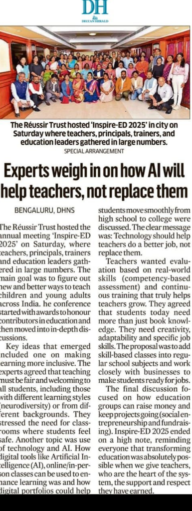 The Réussir Trust’s annual conference, Inspire-ED 2025 – Reimagining Education Through Educators, brought together a vibrant community of teachers, principals, higher education professionals, NGO representatives, skills trainers, social entrepreneurs, and thought leaders. The conference served as a sentimental platform for dialogue, collaboration, and renewed commitment to transforming education in India.
